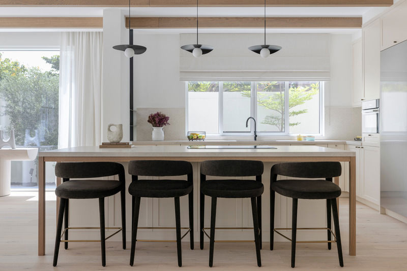 הבית נפתח באטריום זכוכית רחב, המכניס אור טבעי ומייצר תחושת רוגע מיידית. זהו רגע מעבר מן החוץ אל הפנים, שבו האדריכלות אינה רק מסגרת, אלא מצב תודעתי. האור אינו רק מאיר את החלל, אלא מגדיר את קצב השהות בתוכו. במרכז הבית ממוקם חלל האירוח, ה־braai room – מרחב שנבנה סביב אוכל, אש ומפגש. זהו הלב האמיתי של הפרויקט: לא סלון פורמלי, אלא מקום שבו החיים מתרחשים. הפתיחה אל החוץ דרך בר המשכי יוצרת תנועה מתמדת בין פנים לנוף, בין פרטיות לשיתוף.