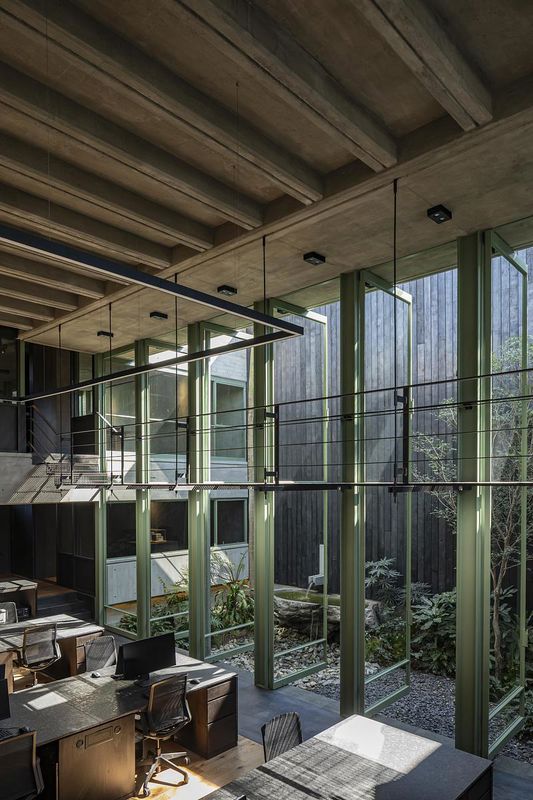 המעבר בין החללים מתווך דרך שינויי גובה, אור וצל, ויוצר חוויה דינמית המפרקת את אחידות סביבת העבודה. בכך, המבנה נמנע מהאופי הסגור והחזרתי של משרדים מסורתיים, ומציע מרחב משתנה המעודד שהות, התבוננות ואינטראקציה לא פורמלית.